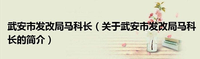 本文關于武安市發改局馬科長的簡介就講解完畢,希望對大家有所幫助。