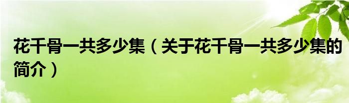 本文關(guān)于花千骨一共多少集的簡介就講解完畢,希望對大家有所幫助。