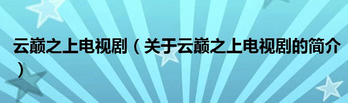 本文關于云巔之上電視劇的簡介就講解完畢,希望對大家有所幫助。