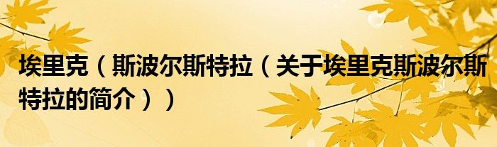 大家好,埃里克 斯波爾斯特拉,關于埃里克 斯波爾斯特拉的簡介很多人還不知道,現在讓我們一起來看看吧!