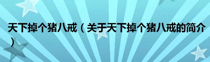 本文關于天下掉個豬八戒的簡介就講解完畢,希望對大家有所幫助。