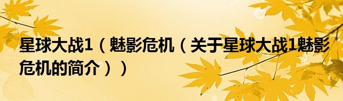 本文關于星球大戰1 魅影危機的簡介就講解完畢,希望對大家有所幫助。