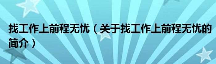 本文關于找工作上前程無憂的簡介就講解完畢,希望對大家有所幫助。