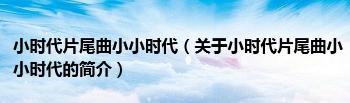 本文關于小時代片尾曲小小時代的簡介就講解完畢,希望對大家有所幫助。