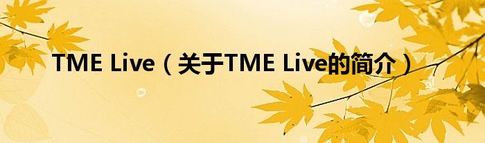 大家好,TME Live,關于TME Live的簡介很多人還不知道,現在讓我們一起來看看吧!