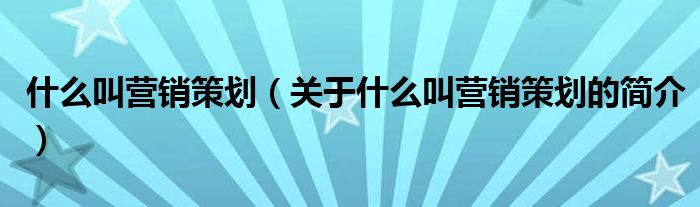 大家好,什么叫營銷策劃,關于什么叫營銷策劃的簡介很多人還不知道,現在讓我們一起來看看吧!