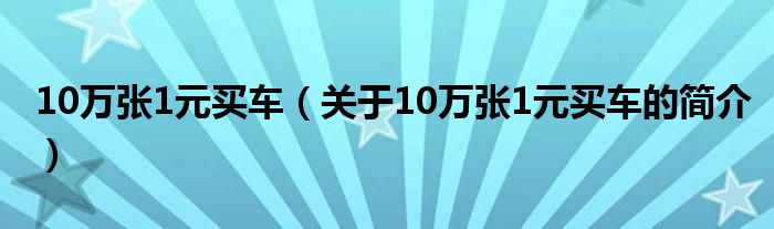 本文關(guān)于10萬張1元買車的簡介就講解完畢,希望對大家有所幫助。
