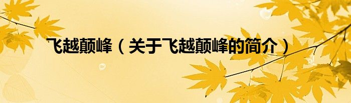 大家好,飛越顛峰,關于飛越顛峰的簡介很多人還不知道,現在讓我們一起來看看吧!