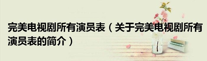 本文關于完美電視劇所有演員表的簡介就講解完畢,希望對大家有所幫助。
