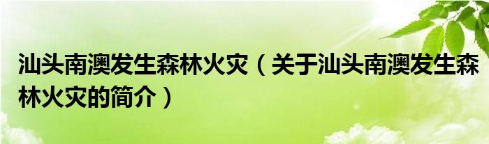 本文關于汕頭南澳發生森林火災的簡介就講解完畢,希望對大家有所幫助。