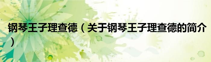 本文關于鋼琴王子理查德的簡介就講解完畢,希望對大家有所幫助。