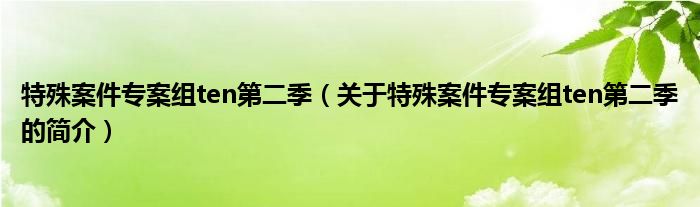 本文關于特殊案件專案組ten第二季的簡介就講解完畢,希望對大家有所幫助。