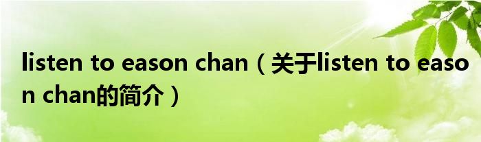 本文關于listen to eason chan的簡介就講解完畢,希望對大家有所幫助。