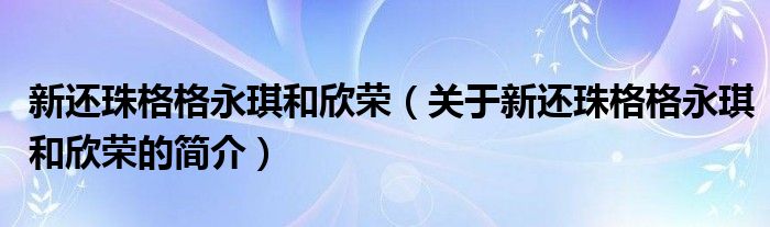 大家好,新還珠格格永琪和欣榮,關于新還珠格格永琪和欣榮的簡介很多人還不知道,現在讓我們一起來看看吧!