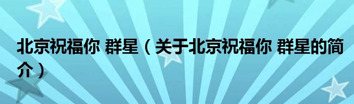 本文關(guān)于北京祝福你 群星的簡介就講解完畢,希望對大家有所幫助。