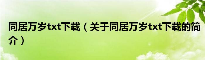 本文關于同居萬歲txt下載的簡介就講解完畢,希望對大家有所幫助。