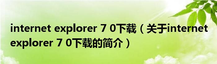本文關于internet explorer 7 0下載的簡介就講解完畢,希望對大家有所幫助。