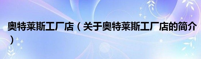 本文關于奧特萊斯工廠店的簡介就講解完畢,希望對大家有所幫助。