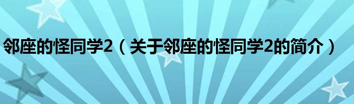 本文關(guān)于鄰座的怪同學(xué)2的簡介就講解完畢,希望對大家有所幫助。