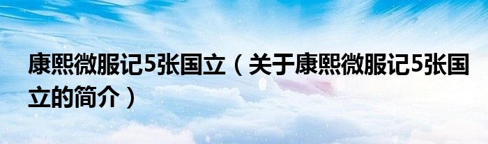大家好,康熙微服記5張國立,關于康熙微服記5張國立的簡介很多人還不知道,現在讓我們一起來看看吧!