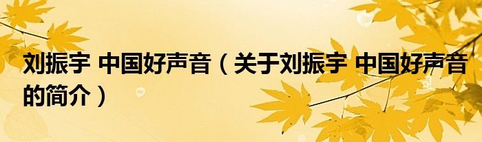 本文關于劉振宇 中國好聲音的簡介就講解完畢,希望對大家有所幫助。
