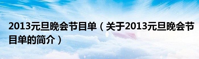 大家好,2013元旦晚會節目單,關于2013元旦晚會節目單的簡介很多人還不知道,現在讓我們一起來看看吧!