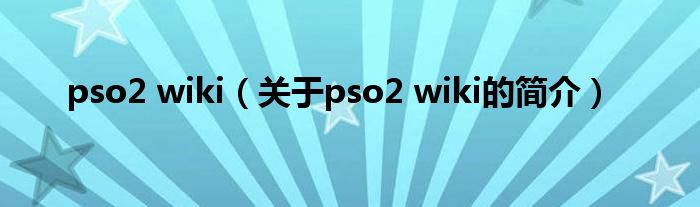 本文關于pso2 wiki的簡介就講解完畢,希望對大家有所幫助。