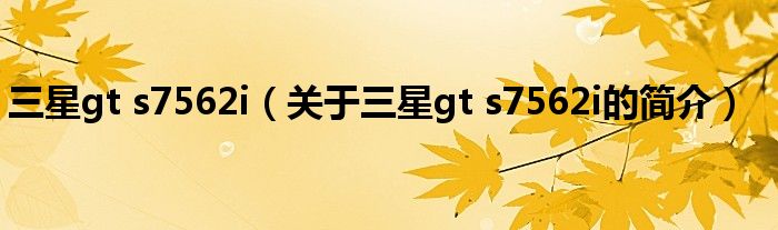 本文關(guān)于三星gt s7562i的簡介就講解完畢,希望對大家有所幫助。