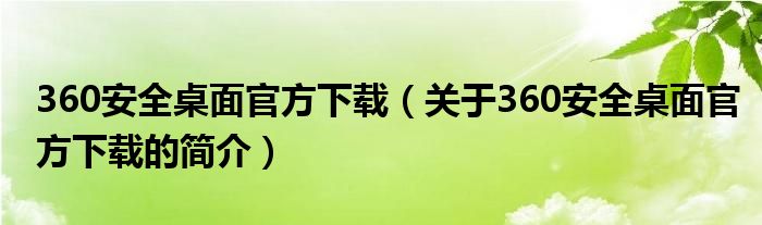 本文關于360安全桌面官方下載的簡介就講解完畢,希望對大家有所幫助。