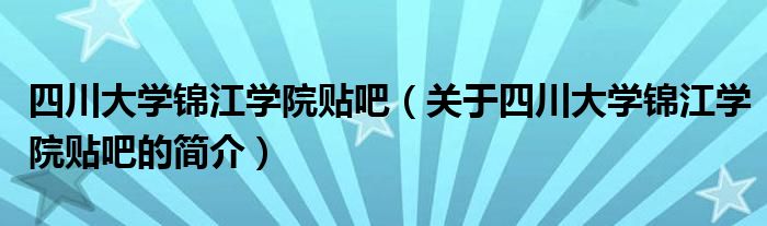本文關于四川大學錦江學院貼吧的簡介就講解完畢,希望對大家有所幫助。