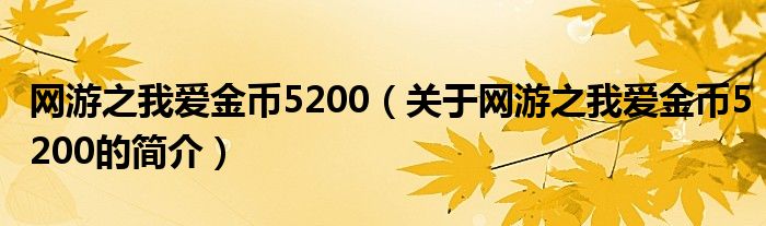 本文關于網游之我愛金幣5200的簡介就講解完畢,希望對大家有所幫助。