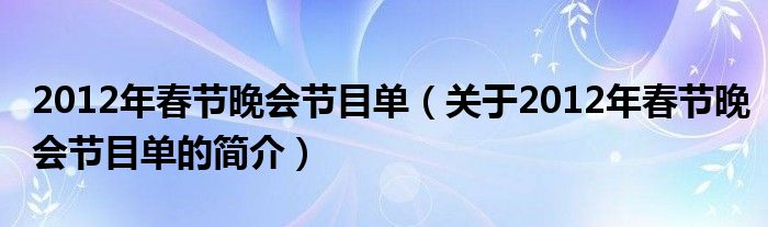 本文關(guān)于2012年春節(jié)晚會(huì)節(jié)目單的簡介就講解完畢,希望對大家有所幫助。