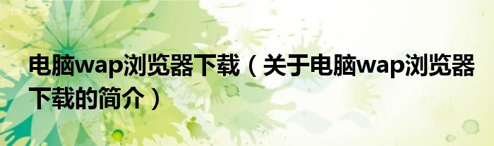 本文關于電腦wap瀏覽器下載的簡介就講解完畢,希望對大家有所幫助。