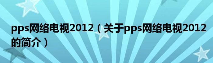 本文關于pps網絡電視2012的簡介就講解完畢,希望對大家有所幫助。