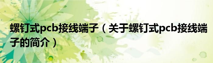 本文關于螺釘式pcb接線端子的簡介就講解完畢,希望對大家有所幫助。