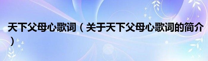 本文關于天下父母心歌詞的簡介就講解完畢,希望對大家有所幫助。