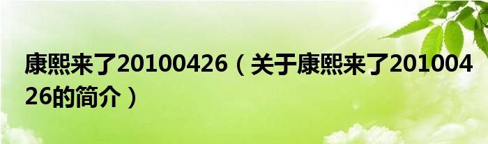 大家好,康熙來了20100426,關于康熙來了20100426的簡介很多人還不知道,現在讓我們一起來看看吧!