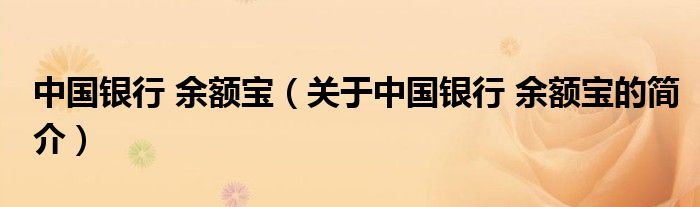 本文關于中國銀行 余額寶的簡介就講解完畢,希望對大家有所幫助。