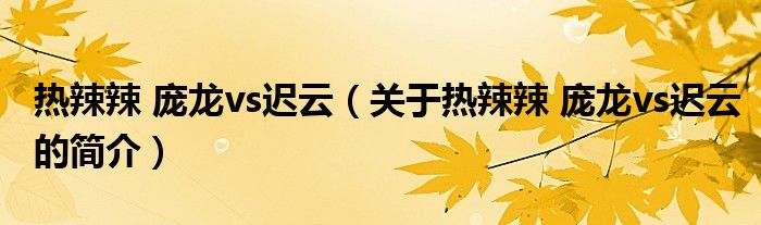 本文關(guān)于熱辣辣 龐龍vs遲云的簡介就講解完畢,希望對大家有所幫助。
