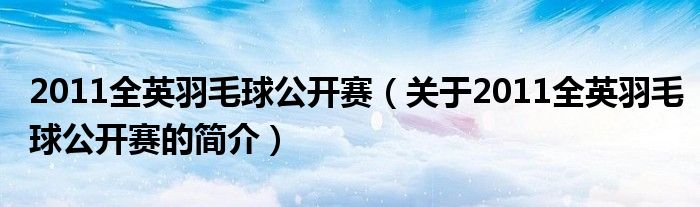 本文關于2011全英羽毛球公開賽的簡介就講解完畢,希望對大家有所幫助。