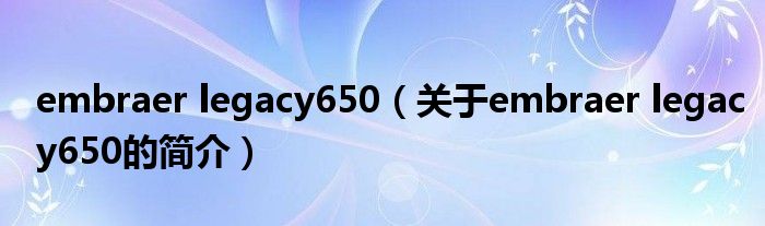 大家好,embraer legacy650,關(guān)于embraer legacy650的簡介很多人還不知道,現(xiàn)在讓我們一起來看看吧!