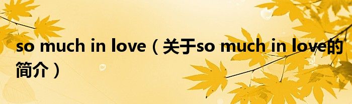本文關于so much in love的簡介就講解完畢,希望對大家有所幫助。