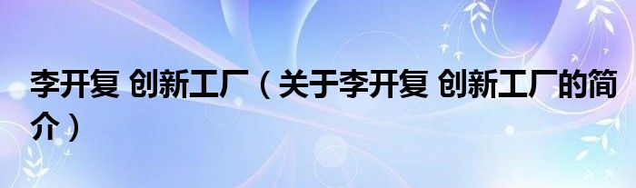 大家好,李開復 創新工廠,關于李開復 創新工廠的簡介很多人還不知道,現在讓我們一起來看看吧!