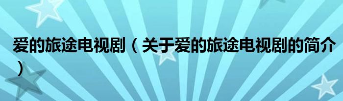 本文關于愛的旅途電視劇的簡介就講解完畢,希望對大家有所幫助。
