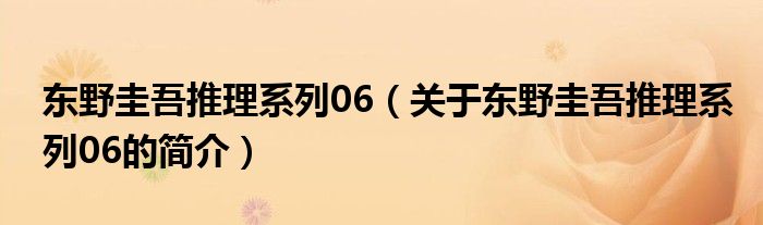 本文關于東野圭吾推理系列06的簡介就講解完畢,希望對大家有所幫助。