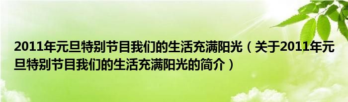本文關(guān)于2011年元旦特別節(jié)目我們的生活充滿陽光的簡介就講解完畢,希望對大家有所幫助。