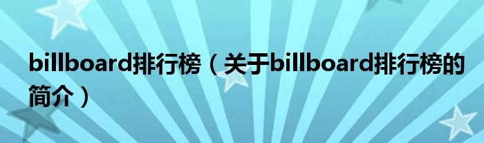本文關(guān)于billboard排行榜的簡介就講解完畢,希望對大家有所幫助。