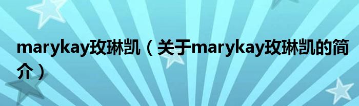 大家好,marykay玫琳凱,關于marykay玫琳凱的簡介很多人還不知道,現在讓我們一起來看看吧!