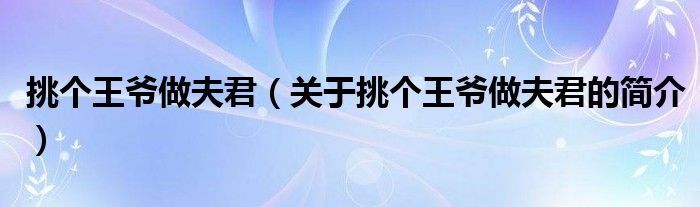 大家好,挑個王爺做夫君,關于挑個王爺做夫君的簡介很多人還不知道,現在讓我們一起來看看吧!