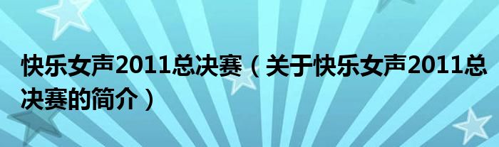 大家好,快樂女聲2011總決賽,關于快樂女聲2011總決賽的簡介很多人還不知道,現在讓我們一起來看看吧!